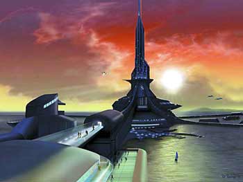建造在太平洋中某個地點的高達25公裏的電梯塔(電腦設計圖)