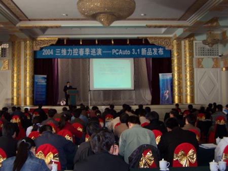 2004年4月6日,三維力控春季巡演暨PCAuto3.1新(xin)品(pin)發(fa)布(bu)會(hui)在(zai)北(bei)京(jing)友(you)誼(yi)賓(bin)館(guan)拉(la)開(kai)了(le)帷(wei)幕(mu),雖(sui)然(ran)當(dang)天(tian)上(shang)午(wu)下(xia)起(qi)了(le)小(xiao)雨(yu),但(dan)與(yu)會(hui)的(de)業(ye)內(nei)朋(peng)友(you)熱(re)情(qing)絲(si)毫(hao)不(bu)減(jian),到(dao)場(chang)人(ren)數(shu)已(yi)超(chao)出(chu)了(le)預(yu)定(ding)位(wei)置(zhi),隻(zhi)能(neng)臨(lin)時(shi)在(zai)會(hui)場(chang)後(hou)排(pai)增(zeng)加(jia)座(zuo)位(wei),場(chang)內(nei)氣(qi)氛(fen)空(kong)前(qian)熱(re)烈(lie)。