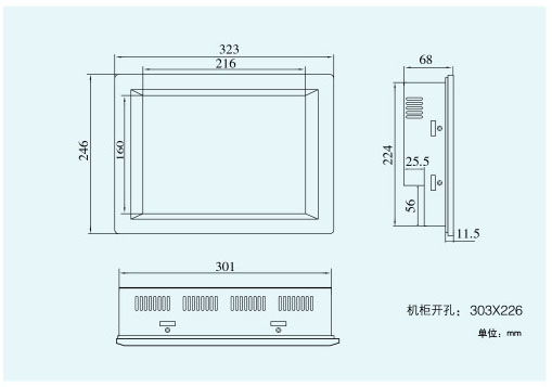 機櫃開孔:302 X 225 mm