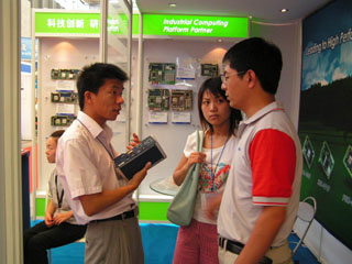 在眾星雲集的五號展館中,研揚科技的展位更顯精致、搶眼。研揚科技此次展出的是近期上市的以ISD(工業係統產品)為主的最新產品。吸引了眾多行業用戶駐足觀看,並向我們的工程師詳細谘詢。