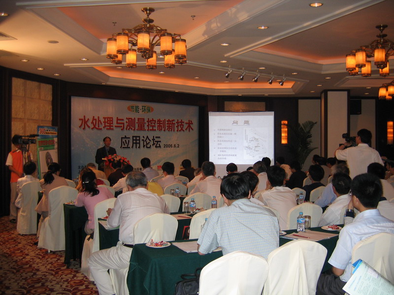 為滿足廣大用戶對水處理與測量控製的一些新技術在節能環保中的應用有更深入了解,加強生產廠商與專家、用戶的交流和互動,2006年6月2日下午,上海市淨水技術學會與華東理工大學資源與環境工程學院、《世界儀表與自動化》雜誌及科訊網在上海廣場長城假日酒店共同主辦了──節能·環保 水處理與測量控製新技術應用論壇。會議由上海市環保產業協會淨水與飲水專業委員會主任、華東理工大學資源與環境工程學院教授陸柱主持。