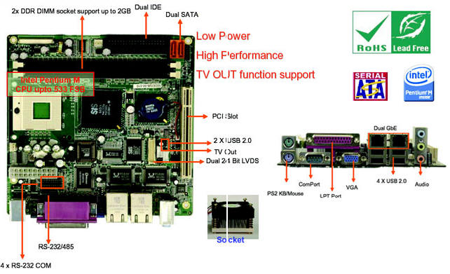 一、支持高性能低發熱量的Intel® Pentium® M,FSB 533