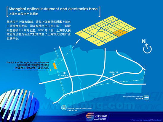 為wei了le加jia快kuai光guang儀yi電dian產chan業ye的de發fa展zhan,上shang海hai已yi著zhe手shou啟qi動dong建jian設she光guang儀yi電dian產chan業ye基ji地di。該gai基ji地di位wei於yu上shang海hai南nan部bu地di區qu杭hang州zhou灣wan畔pan的de奉feng賢xian區qu境jing內nei的de上shang海hai市shi工gong業ye綜zong合he開kai發fa區qu內nei,首shou期qi規gui劃hua麵mian積ji2.5平方公裏。