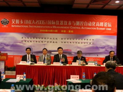 10月14日上午,第三屆艾姆卡(IMCA2006)國際儀器儀表與測控自動化高峰論壇在深圳會展中心隆重召開。中國儀器儀表學會副理事長兼秘書長吳幼華、中國儀器儀表學會名譽理事長陸廷傑、深圳市副市長呂銳鋒、中國工程院副院長鄔賀銓院士、深圳市儀器儀表學會會長杜如彬等主要領導出席了論壇。
