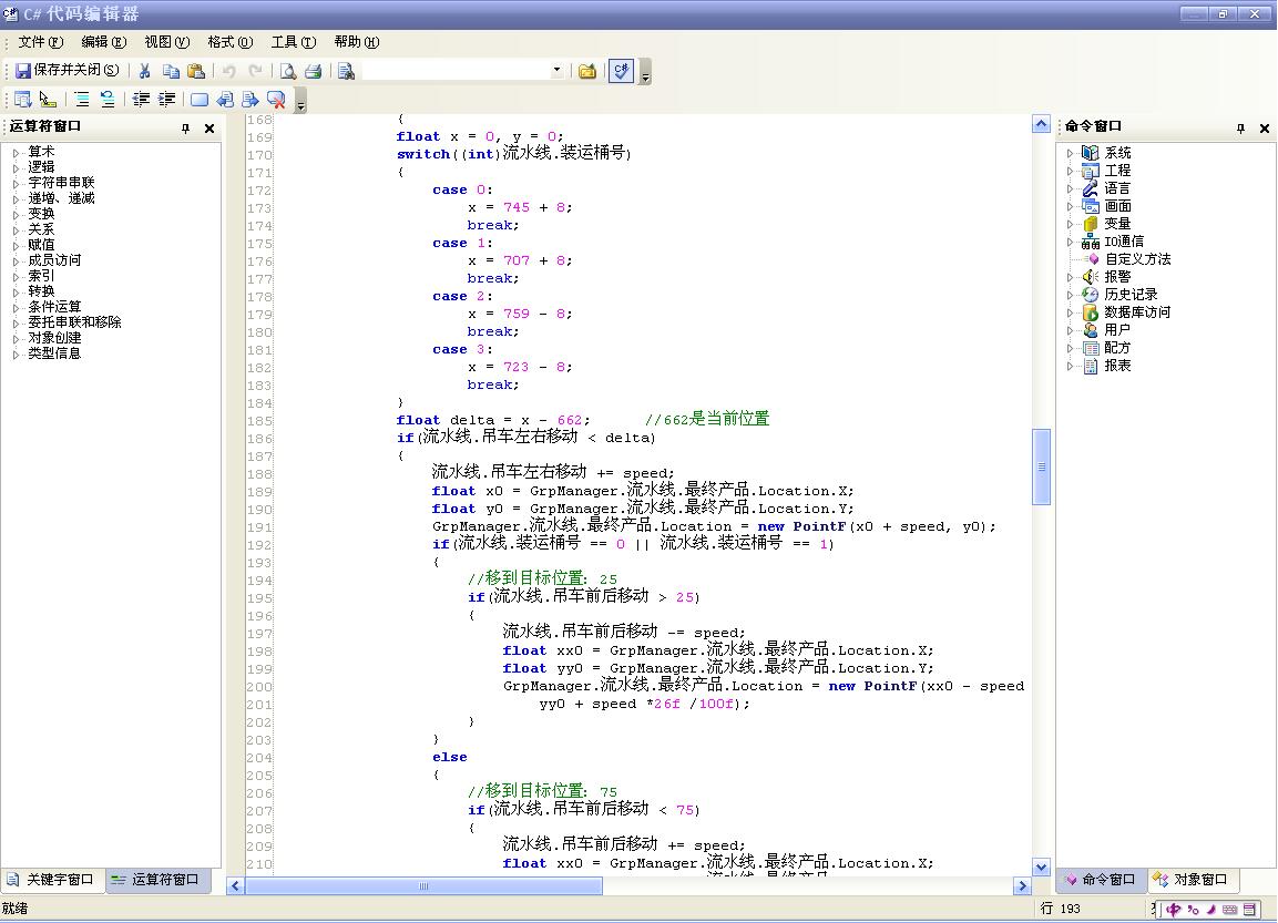 “易控(INSPEC)”的C#用yong戶hu程cheng序xu,是shi用yong戶hu擴kuo展zhan監jian控kong係xi統tong功gong能neng的de強qiang大da工gong具ju,將jiang為wei用yong戶hu實shi現xian特te殊shu效xiao果guo和he功gong能neng,創chuang造zao前qian所suo未wei有you的de條tiao件jian,特te別bie是shi高gao級ji用yong戶hu,將jiang能neng隨sui心xin所suo欲yu如ru虎hu添tian翼yi地di編bian製zhi各ge種zhong強qiang大da的de邏luo輯ji、動畫、算法和操作等功能,同時可以用更精簡的代碼實現需要大量代碼的傳統腳本程序。總之,“易控(INSPEC)”的C#用戶程序將為用戶帶來前所未有的超越組態軟件的體驗。
