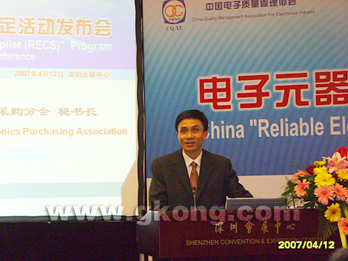 2007年4月12日,由中國電子質量管理協會和中國電子企業協會采購分會共同主辦的“電子元器件可信供貨商認定活動發布會”在深圳會展中心舉行。