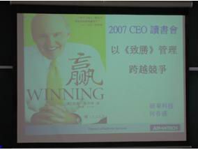 上海,2007年4月19日,研華攜手上海交大安泰管理學院,共同舉辦了主題為“以致勝管理跨越競爭-《贏》”的管理讀書會。研華中國區總經理何春盛,交大MBA徐飛執行院長,GE亞太區財務長鄭金慶作為主要演講嘉賓,以導讀、探討的形式,通過CE局中人的眼光,豐富生動地為在座的70多名MBA學生和企業高管闡述了企業如何以致勝管理帶動企業快速發展。