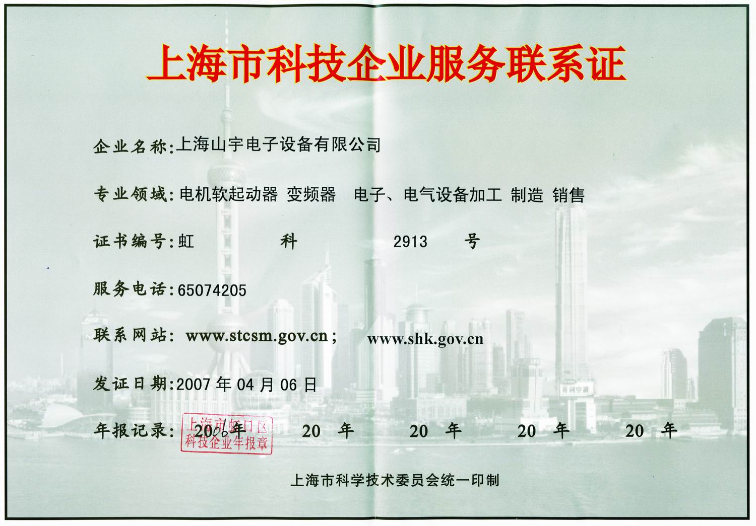 上海山宇榮獲<科技企業資質證書>