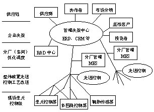 一個比較完整的生命工廠係統結構如圖3所示,可以看出,原來企業的許多層次都沒有了。分廠管理和先進控製裝置這一層信息直接通到大腦中樞--管理決策中心,管理決策中心包括ERP、CRM(客戶關係管理)jitongjifenxigongjudeng,bazhongcengganbudouguidaochangchangbangongshi,youjingyingchangchangyongjisuanjizhijieguanli,tongshi,bagongyinglianyezhijietongdaojuecezhongxin,youjuecezhongxintongyiguanli。youyuxinxibushiyijiyijizhongjishangquershizhijietongshangqu,yincikeyibaozhengxinxideshishixinghezhunquexing。ciwai,dicengkongzhijibenshangdoushifensandezhinengkongzhi,jikongzhixitonghegongyizhuangzhishiyoujidijiehezaiyiqide,youzizhenduanxitong,nengzidongbaogaoshebeideyunzhuanzhuangtai,yibianjishipaichuguzhang。