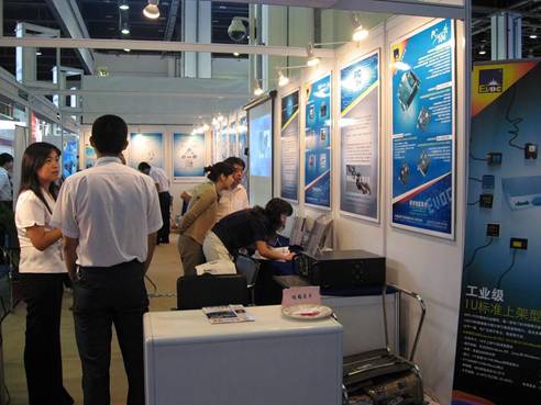 通用產品事業部為與會者提供了包括EPIC結構的EC4係列單板電腦,一款基於Intel Q965芯片組,具有雙核CPU的長卡FSC-1811V2NA,以及機箱係列的IPC-8422和IPC-8103。IPC-8422是一款全新設計的4U 19〞標準上架機箱,標配為後端可抽拉電源或選普通電源,前端可拆卸風扇設計,前麵板增加了LCD功能顯示模塊以顯示CPU及箱體內部溫度、硬盤的工作狀態。