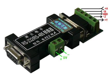 3、TTL與RS-485/422的轉換。可將RS-232通信距離延長至1.2Km以上(9600bps時)。