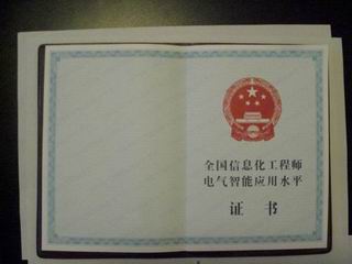 本證書是信息產業部、建jian設she部bu聯lian合he頒ban發fa的de權quan威wei認ren證zheng,通tong過guo全quan國guo電dian氣qi智zhi能neng應ying用yong水shui平ping考kao試shi相xiang應ying級ji別bie的de學xue員yuan,成cheng績ji合he格ge可ke獲huo得de信xin息xi產chan業ye部bu電dian子zi人ren才cai交jiao流liu中zhong心xin和he建jian設she部bu印yin製zhi並bing頒ban發fa的de證zheng書shu和he成cheng績ji單dan。