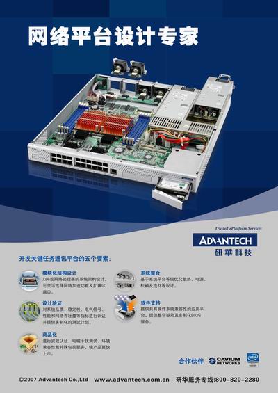 2007年8月14日,全球領先的ePlatform領導廠商——研華科技,攜手Intel、 Microsoft、Silicom、RMI、Cavium在北京麗亭華苑酒店舉辦了“你的安全,我的任務——新一代網絡安全平台發展趨勢國際論壇”。Intel等全球知名芯片廠商代表以及近百名國內知名網絡安全用戶代表出席了本次論壇,中國計算機報、網絡通信世界、網管員世界、C114和IT168等知名媒體也參與此次論壇的報道。