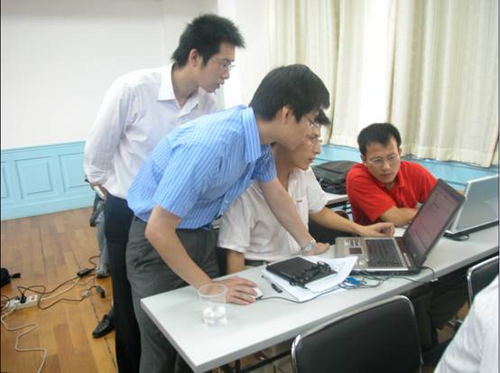 傑控科技就FameView軟件的特點、在大項目上的優勢、 軟件的使用等做了介紹,注重講了FameView為ABB PLC做的特殊定製,並以實例,與學員一起做了FameView和ABB PLC的通訊,製作了畫麵和報表、以及報警等,和主講老師一起解決試驗中的問題,大家都很積極熱情。