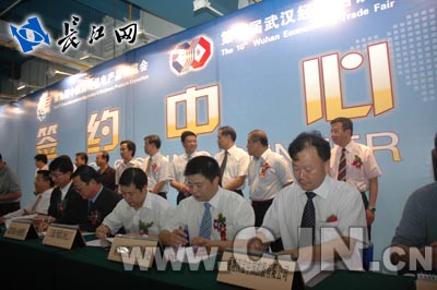 大會期間,有來自美國、日本、英國、法國、德國、荷蘭、香港和台灣等多個國家和地區的外商,以及浙江、廣東、江蘇、上海等地的客商來漢洽談並成功簽約。今天共有30個項目參與簽約,包括進出口貿易合約、外商投資、中外合作、內資內聯等項目。其中:貿易合同10項,總金額6.8億美元;外資項目9項,總投資2.6億美元,協議外資2.1億美元;內資內聯項目10項,總投資37.2億元人民幣;中外合作辦學項目一項。