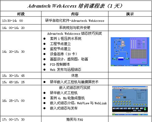 本次課程結合實機演示與操作,講解Advantech WebAccess和研華嵌入式工控機、觸摸屏的先進功能、開發技巧以及在各行業的典型應用。