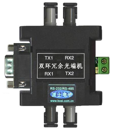 波仕電子的串口雙環冗餘光端機用於:組成環狀光纖網來實現RS-232/RS-485(或者RS-422、TTL等)的多機通信,並且同時有兩路相互冗餘的環狀光纖網。