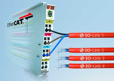 IO-Link 端子模塊 EL6224 可連接最多4 個 IO-Link 設備。