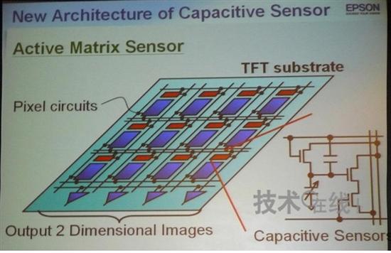 精工愛普生開發出了內置觸摸傳感器功能的液晶麵板,並在“SID 2008”上發布(演講序號:55.2)。此液晶麵板采用該公司的低溫多結晶矽TFT技術,在內部形成傳感器而實現了觸摸功能。該傳感器以4個像素為單位檢測加載在液晶分子上的電荷容量。