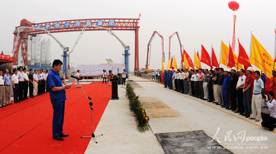 人民網北京6月14日電 京滬高速鐵路的第一孔九百噸級的無砟箱型橋梁,6月12日在安徽宿州中國鐵建十四局集團橋梁廠現場開始生產。