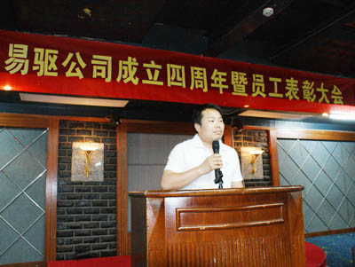 6月15日,公司組織全體員工遊覽了仙湖植物園以後,下午3時shi踏ta上shang離li開kai仙xian湖hu植zhi物wu園yuan的de車che返fan回hui南nan方fang苑yuan大da酒jiu店dian,在zai南nan方fang苑yuan三san樓lou大da廳ting,易yi驅qu公gong司si新xin老lao員yuan工gong歡huan聚ju一yi堂tang,沉chen浸jin在zai一yi片pian喜xi慶qing之zhi中zhong,人ren人ren臉lian上shang都dou洋yang溢yi著zhe快kuai樂le與yu幸xing福fu的de神shen情qing,下xia午wu4時,慶典大會由人力資源部經理茹柏飛主持並宣布正式開始,在一片持久、熱烈的掌聲中公司領導朱華東總經理上台致辭,發言中朱總首先祝賀公司迎來四周歲生日,對支持易驅,關注、關心易驅發展的所以人表示衷心的感謝。隨後他與大家一起,回顧了公司從1999年組建核心團隊以來到04年公司正式注冊成立,以及發展至今天所取得的成就,這是一個風雨兼程、艱苦奮鬥、頑強拚搏的光輝曆程,也是一個見證易驅公司從無到有、從小到大、從cong弱ruo到dao強qiang變bian化hua的de曲qu折zhe曆li程cheng。接jie著zhe,朱zhu總zong綜zong合he分fen析xi了le易yi驅qu公gong司si目mu前qian所suo麵mian臨lin的de現xian狀zhuang,他ta指zhi出chu公gong司si之zhi所suo以yi能neng在zai四si年nian中zhong如ru此ci快kuai速su地di成cheng長chang,很hen重zhong要yao的de一yi點dian就jiu是shi我wo們men所suo選xuan擇ze的de行xing業ye,國guo家jia現xian在zai正zheng在zai極ji積ji倡chang導dao節jie能neng減jian排pai政zheng策ce,而er我wo們men所suo生sheng產chan、xiaoshoudebianpinqichanpinshunyinglezheyilishichaoliu,juyouguangkuodeshichangqianjing,zheyeshimuqianwomenyuxuduoqitagaokejiqiyexiangbideyoushisuozai。ruhezhengquebawohaowomendeyoushi,guibiyouyuqiyefazhanlishiduan、規模並不大、zaishichangjingzhengzhonghaichuyuxiangduiruoshidebuzu,shiwomenmeigeyiqurenzaigongzuozhongsuoyaosikaodewenti。weilaiwomendelurengranyouquzhe,danshigongsixiangxin,zhiyaodajiatongxintongde,jixufendou,yidinghuiweiyiququdegengdadeshengli。