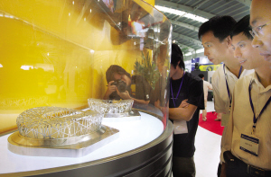 在沈陽一家金屬研究機構的展台上,記者看到了號稱“全球最大的軸套”,“中國最大的軸瓦”等展品。