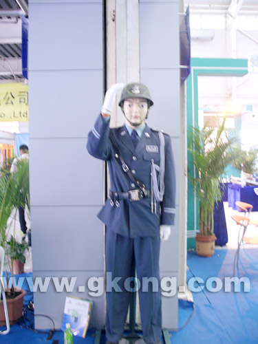 記者在現場看到,展館之間站立著一位友好的“警察”,他不斷的敬禮、揮手,向每一位經過的觀眾發出“您好、歡迎您”等一聲聲問候。走近一看,才發現竟是一位仿真交通警察。