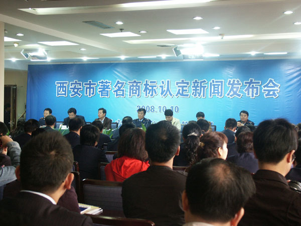 本次新聞發布會在宣讀了2008年度西安市著名商標認定通知之後,由市工商局主要負責人為獲得2008年度西安市著名商標認定企業代表授牌。