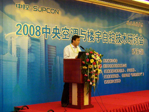 在技術論壇環節,中控電子公司智能建築產品事業部總經理龔小斌作了《中控企業概況介紹》和《行業交叉帶來新的機遇》的報告,表示中控希望與空調設備廠家加強合作,力爭雙贏。事業部副總經理馮華強作了《OptiSYS PCS-300分布式樓宇自控係統》和《典型的中央空調自動化控製原理》的報告,事業部市場部副經理朱健作了《概述中央空調係統的節能改造》的報告。