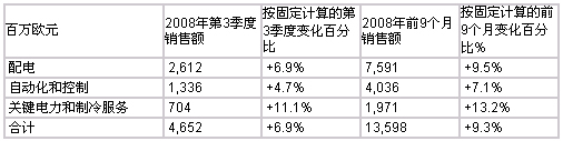亞太地區的銷售額在第3季度增長6.1%。中國業務實現了很高的單位數增長,而且經曆了非常不平凡的一個季度,影響業績的是多種綜合因素,特別是8月和9月的奧運會、由通脹調控措施造成的住宅市場趨勢轉向以及OEM市場較低的出口銷售額。然而能源和基礎設施領域的增長仍保持強勁。