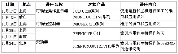 11月份富士電機FA培訓講座日程表