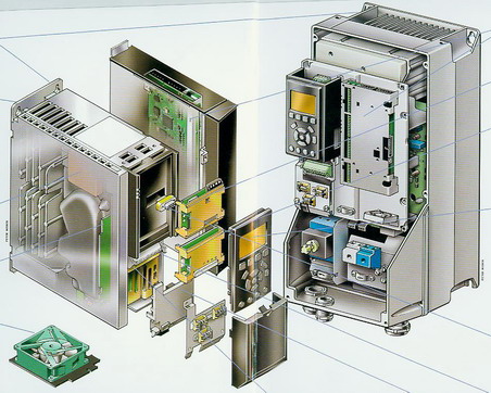 VLT AutomationDrive FC300係列采用的是模塊化結構設計,由主體架構、散熱係統、現場總線選件、顯示選件、控製選件、高級選件(同步、定位、凸輪控製),應用選件(I/O、編碼器)等組成。模塊化開放技術平台使它具有超凡的適應能力和可編程能力。