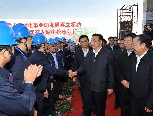 李克強與參加核電站施工、設計和監理等單位的代表握手