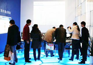 在中控展台現代感十足的“中央控製室”內,營造出了工業現場氛圍,一組工控機展示的是“千萬噸煉油項目組態”,供參觀者進行操作。大型投影幕生動展示了中控15年深厚積累,特別是承擔並出色完成的一批重點項目。諸如中石化武漢分公司500萬噸/年煉油項目、中石化儀表隱患治理項目、江蘇靈穀化工有限公司“4580”項目、兗礦集團魯南化肥廠“3052”項目、巴基斯坦BCL集團Mustehkam水泥廠5000噸/日水泥項目等一大批典型、特色項目的展示,用實際案例及解決方案體現了中控在重點項目上的實施能力。