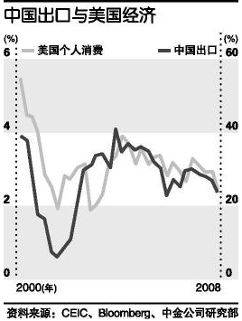 雖然風暴中的中國經濟受到的影響可能要遠弱於美國、歐洲,但近30年來中國經濟高速增長對出口的依賴度很高,美國、歐洲等地的經濟若進入衰退期,中國的出口企業很難獨善其身。