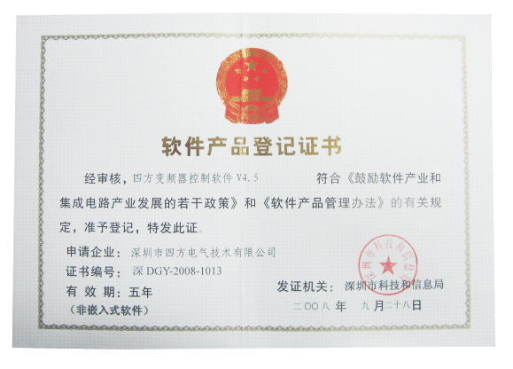 深DGY-2008-1013 深圳市四方電氣技術有限公司 四方變頻器控製軟件V4.5