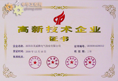 在zai國guo家jia重zhong點dian支zhi持chi的de高gao新xin技ji術shu領ling域yu,持chi續xu進jin行xing研yan究jiu開kai發fa與yu技ji術shu成cheng果guo轉zhuan化hua,形xing成cheng企qi業ye核he心xin自zi主zhu知zhi識shi產chan權quan,並bing以yi此ci為wei基ji礎chu開kai展zhan經jing營ying活huo動dong,重zhong大da高gao新xin技ji術shu成cheng果guo轉zhuan化hua項xiang目mu的de技ji術shu水shui平ping屬shu於yu國guo內nei領ling先xian或huo國guo際ji先xian進jin的de企qi業ye,經jing企qi業ye報bao審shen通tong過guo後hou,才cai能neng被bei認ren定ding為wei“國家級高新技術企業”。國家對高科技自主研發的發展高度重視,在2008年科技部、財政部、國家稅務總局聯合下發新的《高新技術企業認定管理辦法》中,提高了國家級高新技術企業認定的標準和門檻,對企業擁有核心技術的自主知識產權、員工素質和企業贏利這幾方麵來作為硬指標。能夠被認定為“國家級高新技術企業”是一個企業科技實力和科技水平的綜合體現,英威騰能達到要求的高標準、通過認證,充分證明了英威騰的高科技領先水平及企業的綜合實力。