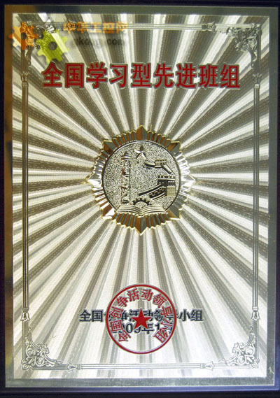 繼研祥集團在2009年初連連摘得全國各項評比中的大獎,春光明媚的三月又傳喜訊,集團產品市場管理本部經全國學習型組織、知識型職工評審委員會評定,被全國創爭活動領導小組授予“2008年度全國學習型先進班組”的榮譽稱號。