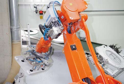 IRB 2400機器人去除馬桶座邊緣的毛刺