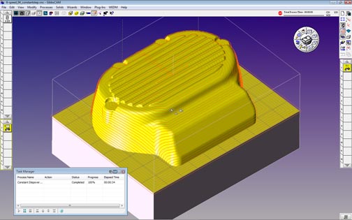 ●改進切槽 –與自動中心檢測類似,但專門為型腔模而設計,從中心向外運轉。在模型上計算Z軸增量平均值,然後生成每個階段的刀路,迅速清除大麵積的材料。