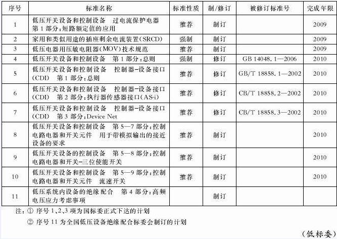 根據國家標準化管理委員會下達的國家標準製修訂計劃,全國低壓電器標準化技術委員會2009年標準的製修訂計劃,以及全國低壓設備絕緣配合標委會的標準製修訂計劃,由上海電器科學研究所(集團)有限公司負責組織起草的標準具體項目如下: