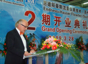 E H的產品很早就進入中國市場了,而且一直享有盛譽。因此E H也一直十分重視中國市場,在上海建立了中國銷售中心。2002年,E H決定在中國建立生產基地,投資245萬美元,在蘇州工業園區成立了恩斯特豪斯流量儀表技術(蘇州)有限公司,建設了3300m2生產區。公司的一期工程在2003年底投入試生產,2004年10月舉行了開業典禮。