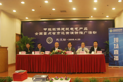 由中國建築裝飾協會和地方省市建築裝飾協會共同舉辦的“節能環保建築電氣產品全國重點省市巡回演講推廣活動”,首批演講分別於4月20日、22日、24日在武漢、杭州、南京舉行。中國建築裝飾協會秘書長劉曉一、總建築師房箴、電氣委秘書長華敬友及武漢市裝協會長張智海、秘書長郭偉、湖北省裝協秘書長何木鬆;浙江省裝協會長惲稚榮、秘書長張秉強;江蘇省裝飾會長毛家泉、副秘書長劉瑗等協會領導和相關部門負責人出席會議。參加三場演講的建築設計、施工、裝飾、房產、電氣等企業代表七百餘人。