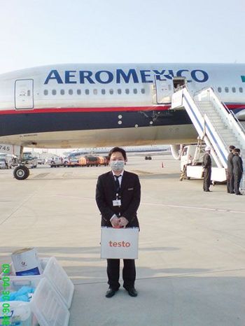2009年4月29日晨5點58分,甲型H1N1流感擴散以來首架抵達中國的墨西哥航班AM098航班降落於浦東機場。旅客下機之前,檢驗檢疫人員身穿防護服,手持德圖精密型紅外測溫儀testo845,登機對所有乘客進行體溫檢測。