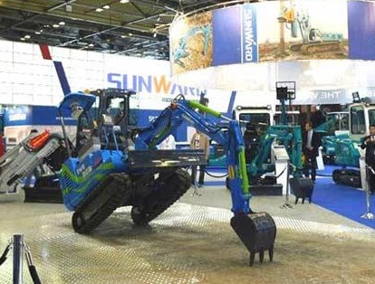 2009年法國INTERMAT展會上,山河智能自主開發的SWEROB2009全電控智能挖掘機------“會跳舞”的挖掘機,伴隨著《藍色多瑙河》優美的旋律,以其高難度的無人操控表演,書寫了工程機械展會史上精彩的一頁。