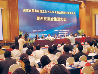 打造推進兩化融合區域性平台工作,又有了新的進展。中國工業報記者從5月22日舉行的南京市國家級信息化和工業化融合試驗區授牌儀式暨兩化融合推進大會上獲悉,南京市被正式授予“國家級兩化融合試驗區”。南鋼集團等10家工業企業,南瑞集團等10家信息服務和軟件企業被首批授予“兩化融合示範企業”。會上還簽署了涵蓋14個行業的多項“兩化融合重點項目”。目前,國家級兩化融合試驗區工作已經確定了各區的實施方案,推出了2009年度的工作計劃,進入實施階段。