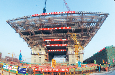 日前,上海世博會演藝中心順利實現鋼結構封頂。至此,上海世博會最大的鋼結構供應商———寶鋼集團已完成了世博中心、中國館、演藝中心三大永久性建築鋼結構加工製造任務。截至目前,寶鋼已累計向上海世博會供應各類精品鋼材8.5萬噸,累計供應鋼結構5.4萬噸。其中,技術難度高、大熔敷焊接工作量大的構件超過55%。並實現了從深化設計、材料供應到鋼結構加工製作的一攬子服務。