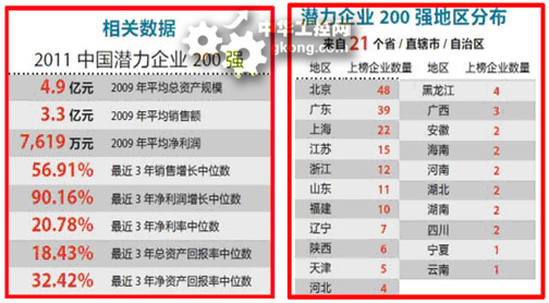 據福布斯中文網的介紹,今年是《福布斯》中文版進行潛力中小企業評選的第七載。其評選規則首先是在幾十萬家中小企業中挑選出2 萬多家,再根據增長性指標(3 年加權銷售增長率、利潤增長率)、回報率指標(3 年加權ROA、ROE)、盈利性指標(淨利率)和銷售及利潤規模指標,對這些候選企業進行排名。在完成了大量行業、企業調研,並對部分優秀候選企業進行實地拜訪之後,再次遴選出了200 家最具潛力的中小企業作為今年的上榜企業。