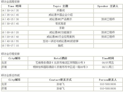 威綸通2009中國區市場HMI研討會將於8月拉開帷幕。作為中國領先的HMI專業製造商,威綸通將向您展示先進的產品理念和強大功能,通過對通用型、網絡型、專業型三大係列HMI產品定位、配置、性能特點的講解,為您提供領先的HMI解決方案。