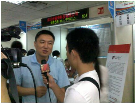 今天上午,普傳科技招聘組按照計劃再次來到位於深圳羅湖區的深圳市人才大市場,進行各崗位,累計15人的新一輪招聘工作,與會期間普傳科技總經理張海傑先生接受了深圳都市頻道《第一現場》欄目記者的采訪,張總表示:普傳科技在企業效益持續增長的同時,牢牢把握以“誠信、責任、創新”為核心價值觀的企業文化理念,始終不忘社會責任,真誠回報社會,從“企業看社會”全麵轉向“從社會看企業”。